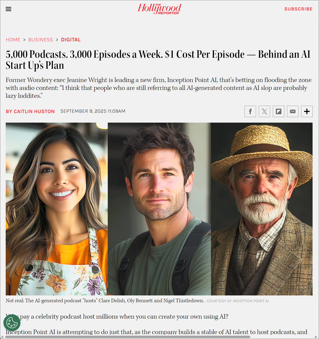 In the 26 September episode of the Podnews Weekly Review podcast, Podnews editor James Cridland spoke with Jeanine Wright, founder and CEO of Inception Point AI, the company behind the mass production of AI-generated podcasts. The interview sheds more light on their approach and ambitions: