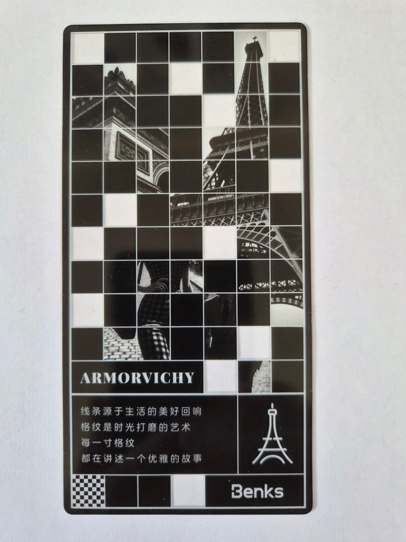 Benks includes a small plastic inlay card in the box, printed with the “ArmorVichy” checkerboard design and an Eiffel Tower motif. It doesn’t have a functional role in protecting the phone, but I think it underlines how Benks wants this case to be seen: not just as a piece of protection, but as part of a design story.