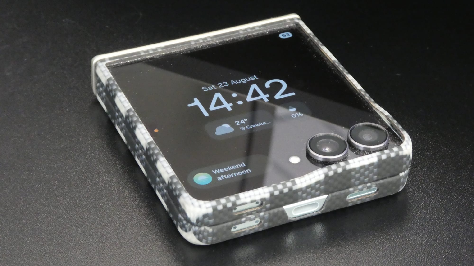 The case fitted to the Z Flip 7: slim, strong and stylish.