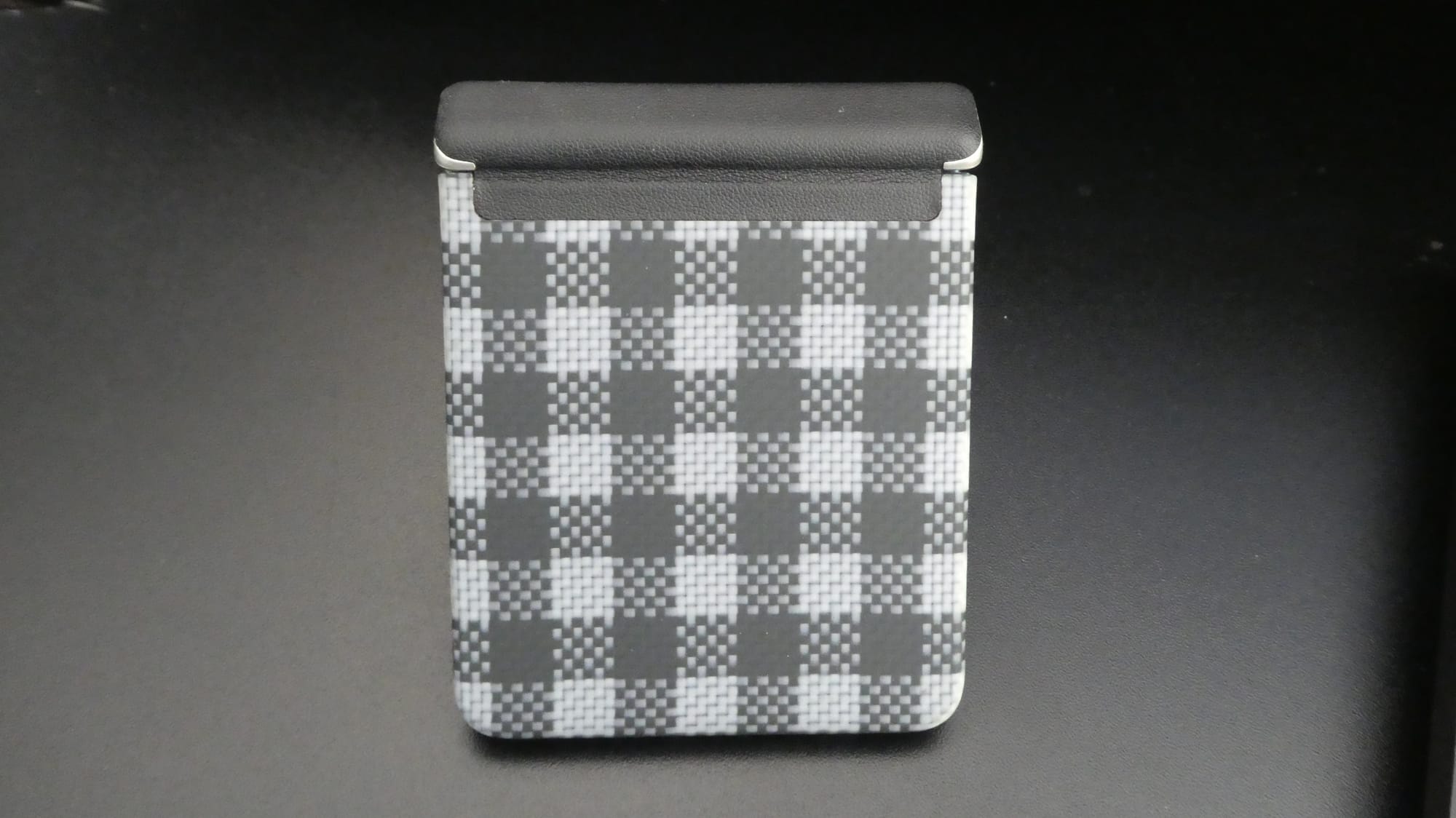The case fits snugly onto the Flip 7, secured in place with adhesive strips to keep case and phone firmly connected.