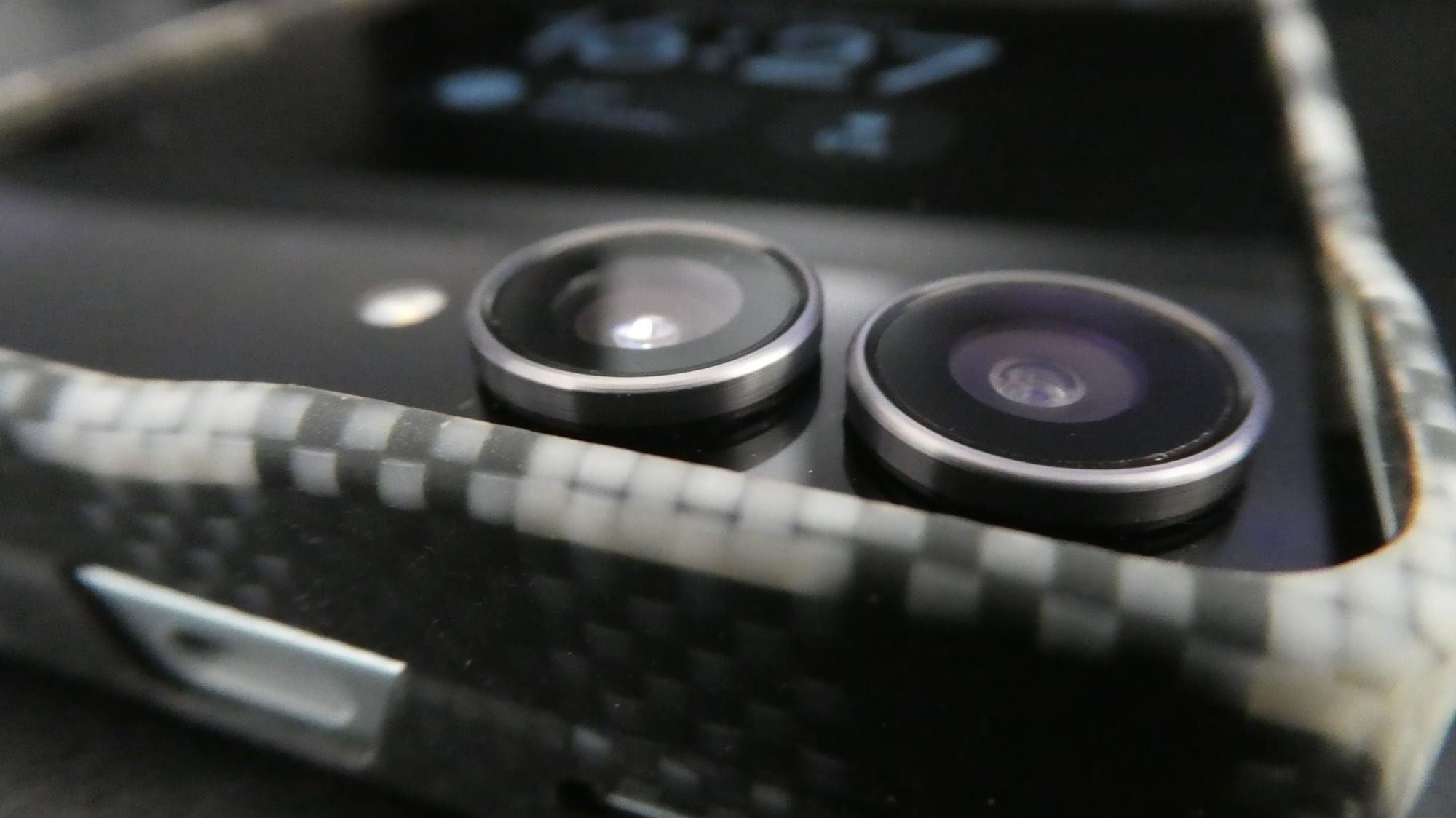 The raised Kevlar case edge ring surrounding the two lenses on the cover screen provides an elegant yet essential protective buffer, offering peace of mind.
