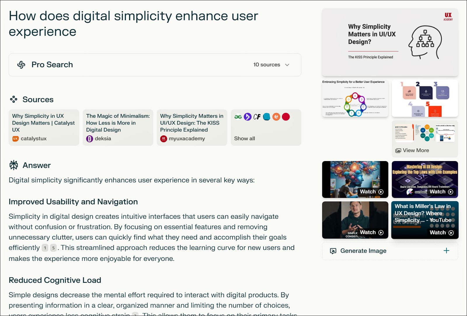 - Perplexity AI: With its evolving AI-driven approach, Perplexity offers a user interface that prioritises functionality and user experience, demonstrating how modern tools can maintain simplicity while harnessing advanced technology.